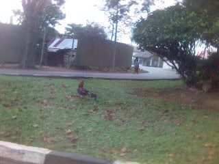 manage to snap a picture of the chicken roaming around when im in the car..actually there's 3...but only manage to snap that..*smirks*